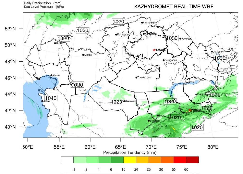 Қазір әл-Фараби атындағы ҚазҰУ суперкомпьютерінде WRF моделін күн сайын автоматты түрде іске қосу жүзеге асырылады. Нәтижесінде Қазақстанның бүкіл аумағы бойынша ауа температурасы, атмосфералық жауын-шашын, жел параметрлері және метеограммалар бойынша болжамдар қалыптастырылады. Есептеулер автоматты режимде орындалады, сонымен қатар модельдің шығыс деректерінің сапасы мен дәлдігін арттыру үшін оларды талдау қатар жүргізіледі, – делінген хабарламада.